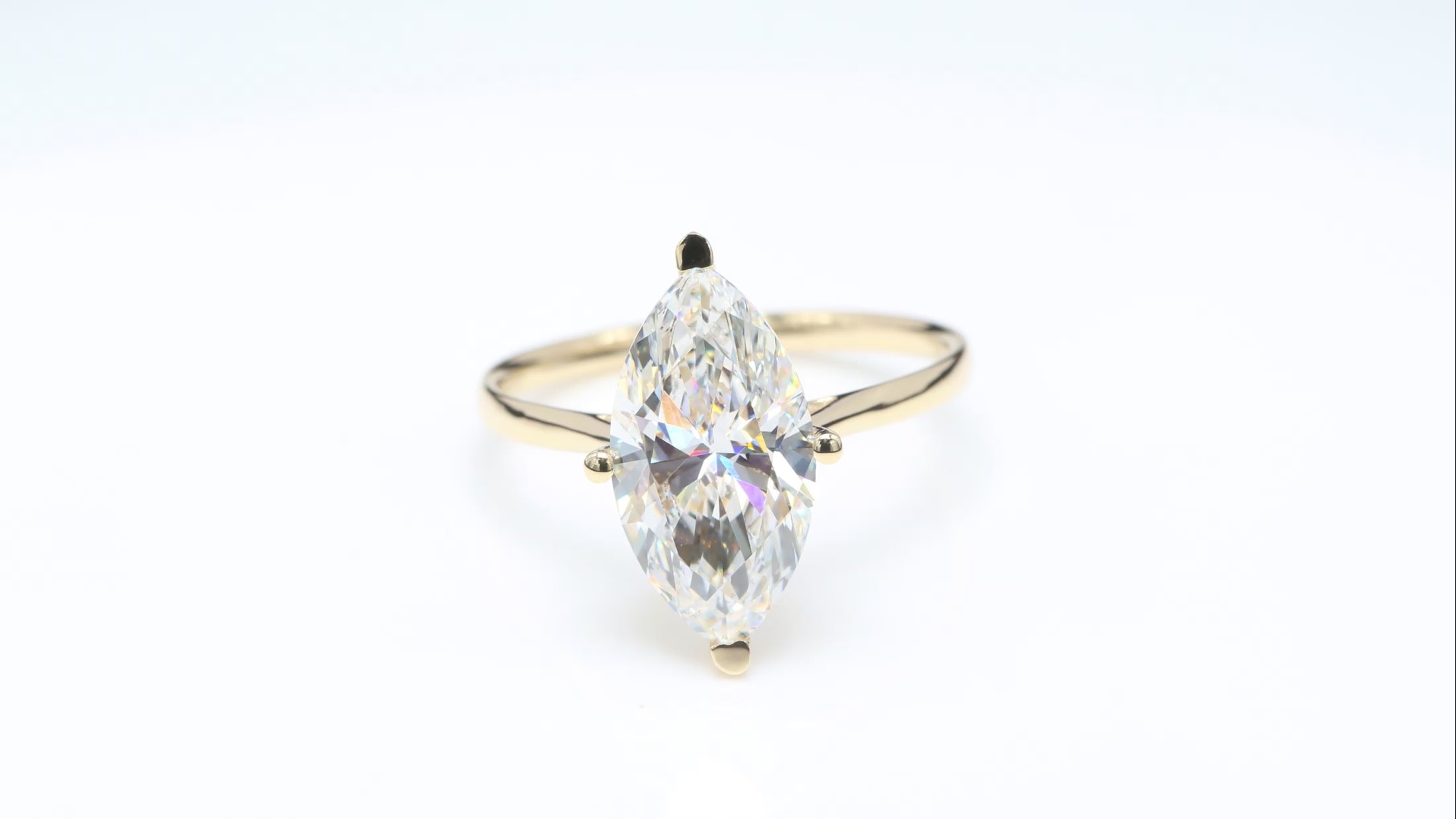 This ring showcases a stunning 3.00 carat marquise-shaped lab-grown diamond. Crafted to the same optical and structural standards as those applied to natural diamonds, it offers exceptional brilliance with a modern and responsible approach to fine jewelry.