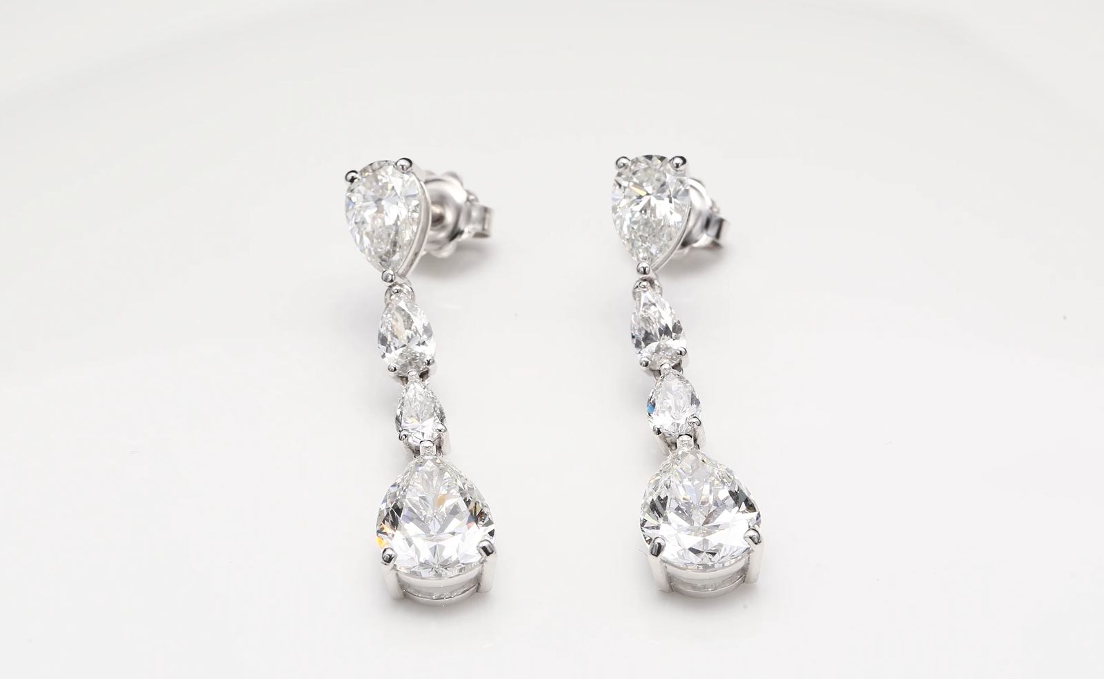 These drop earrings showcase pear-shaped lab-grown diamonds arranged in an elegant vertical design, with a total carat weight of 7.00 carats. Crafted to the same optical and structural standards as those applied to natural diamonds, they offer exceptional brilliance with a modern and responsible approach to fine jewelry.