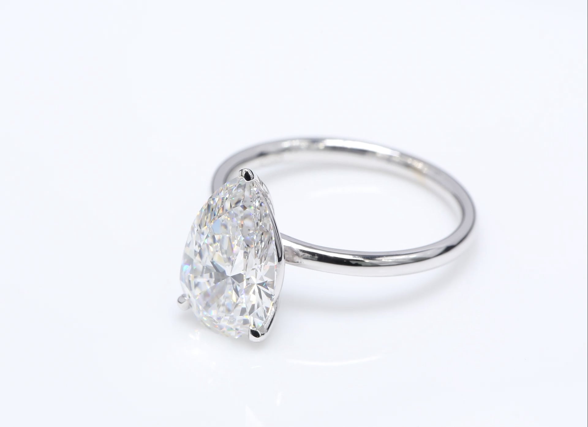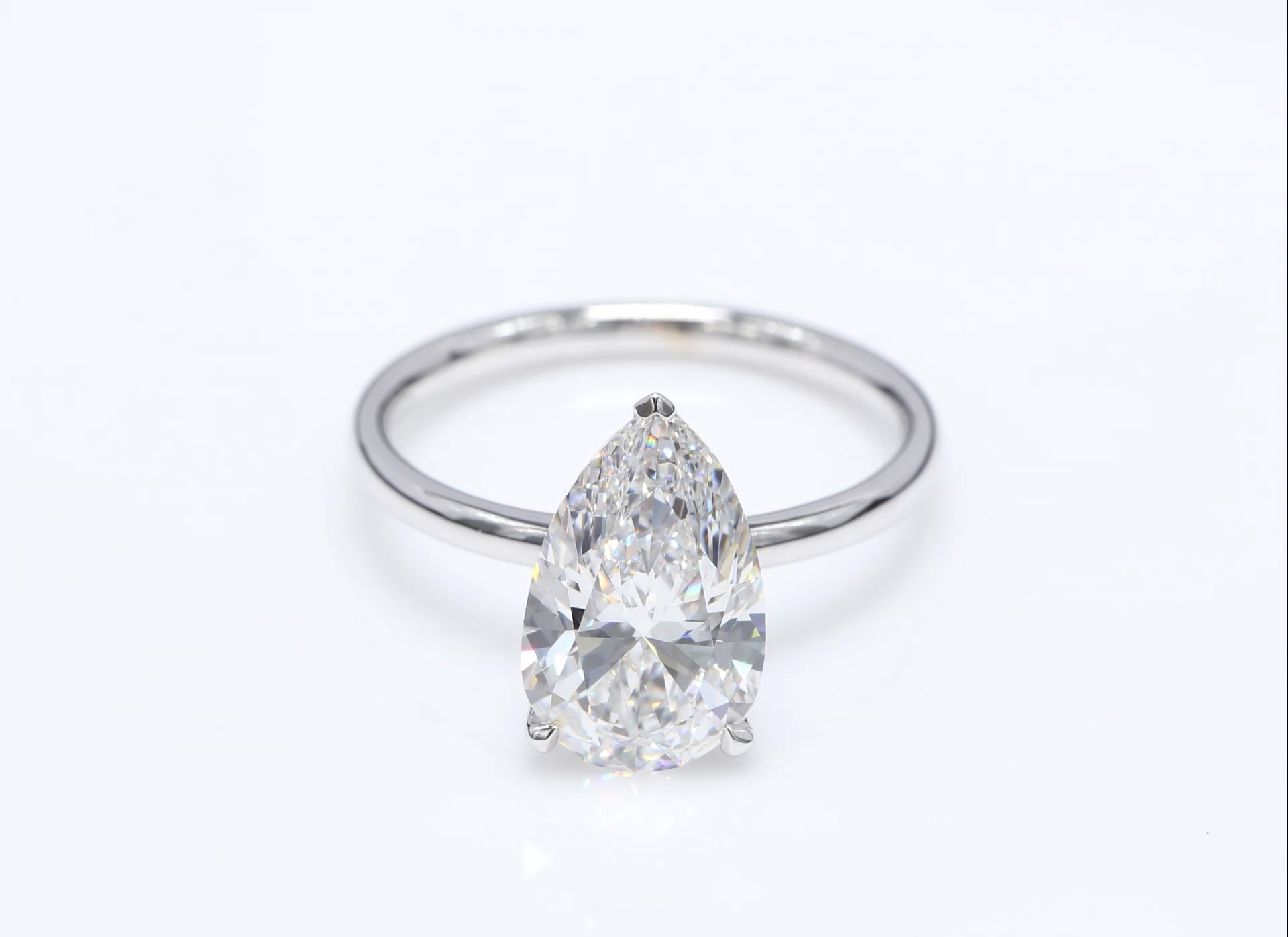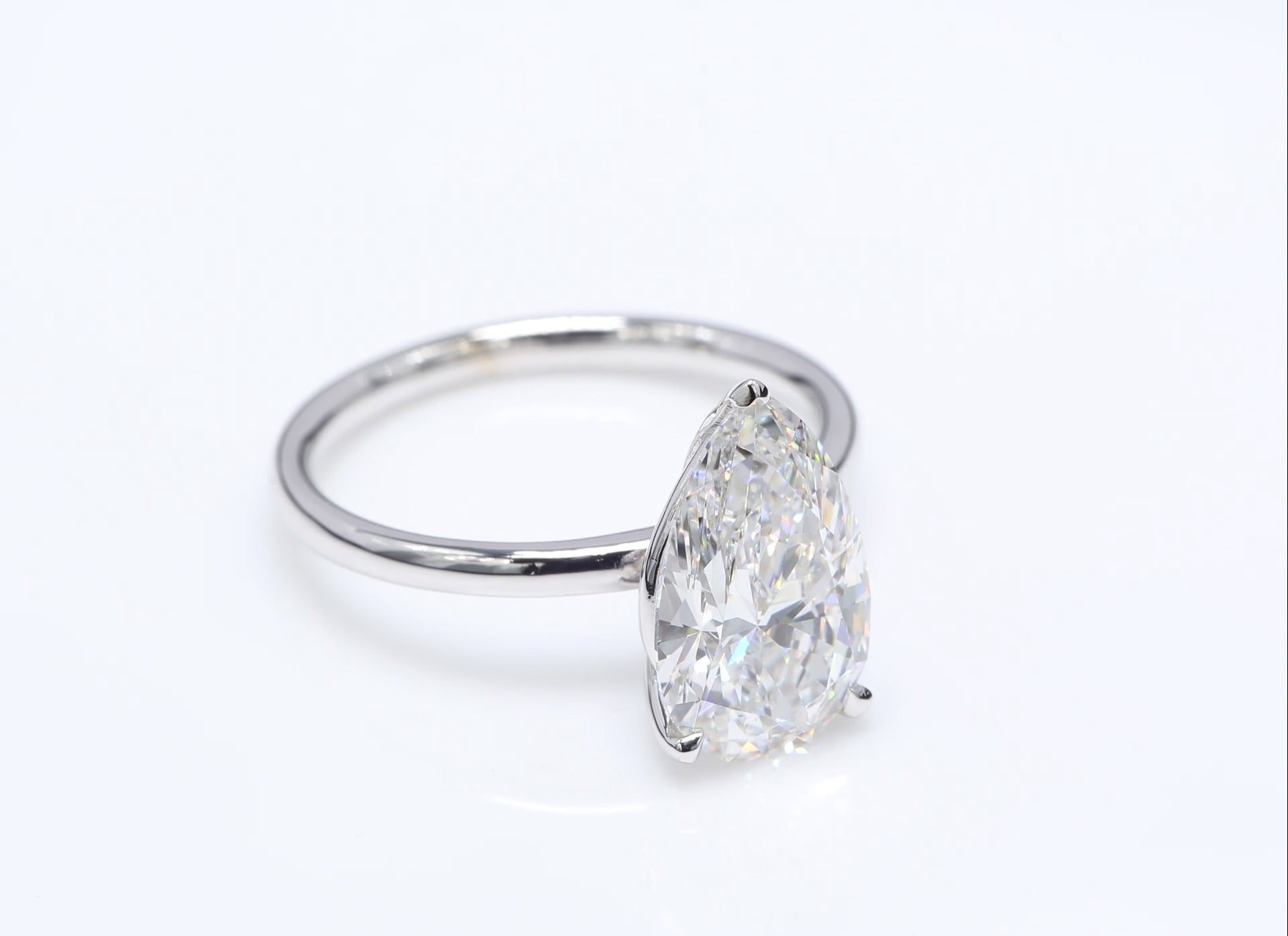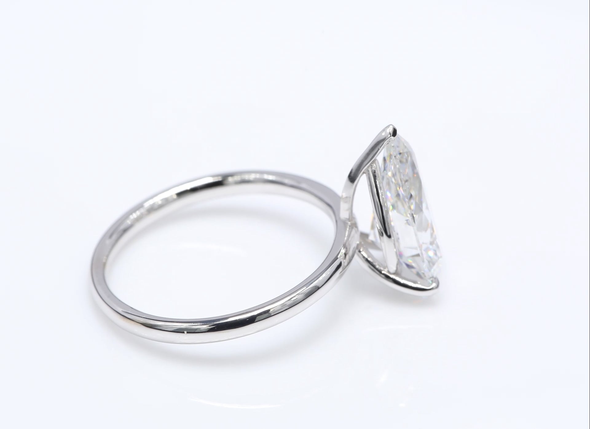 This solitaire white gold ring features stunning 3.00 carats Pear lab grown diamond, set in 18kt gold. With the same brilliance and clarity as a natural diamond, this eco-friendly alternative is perfect for those seeking a beautiful and ethical choice.