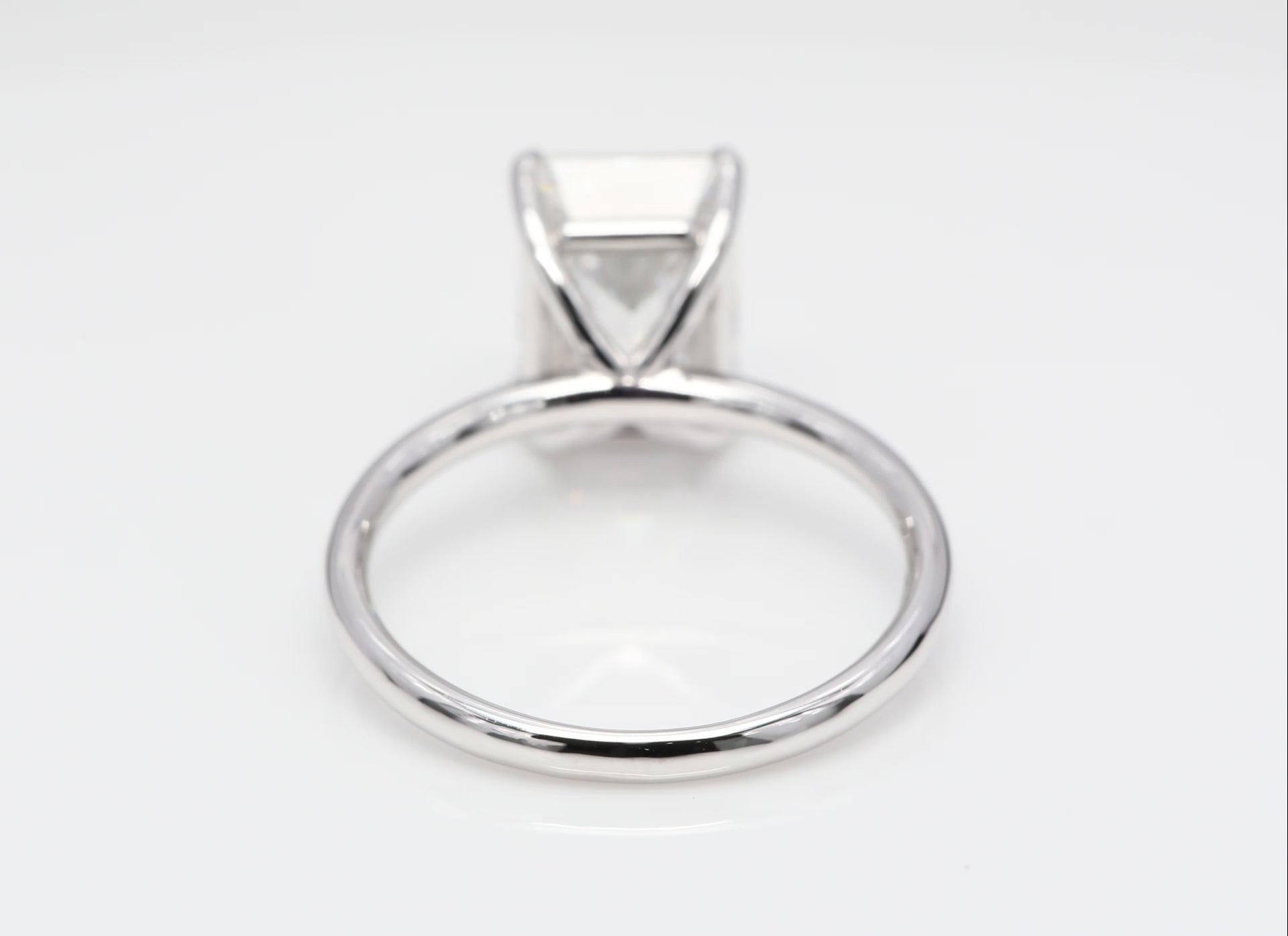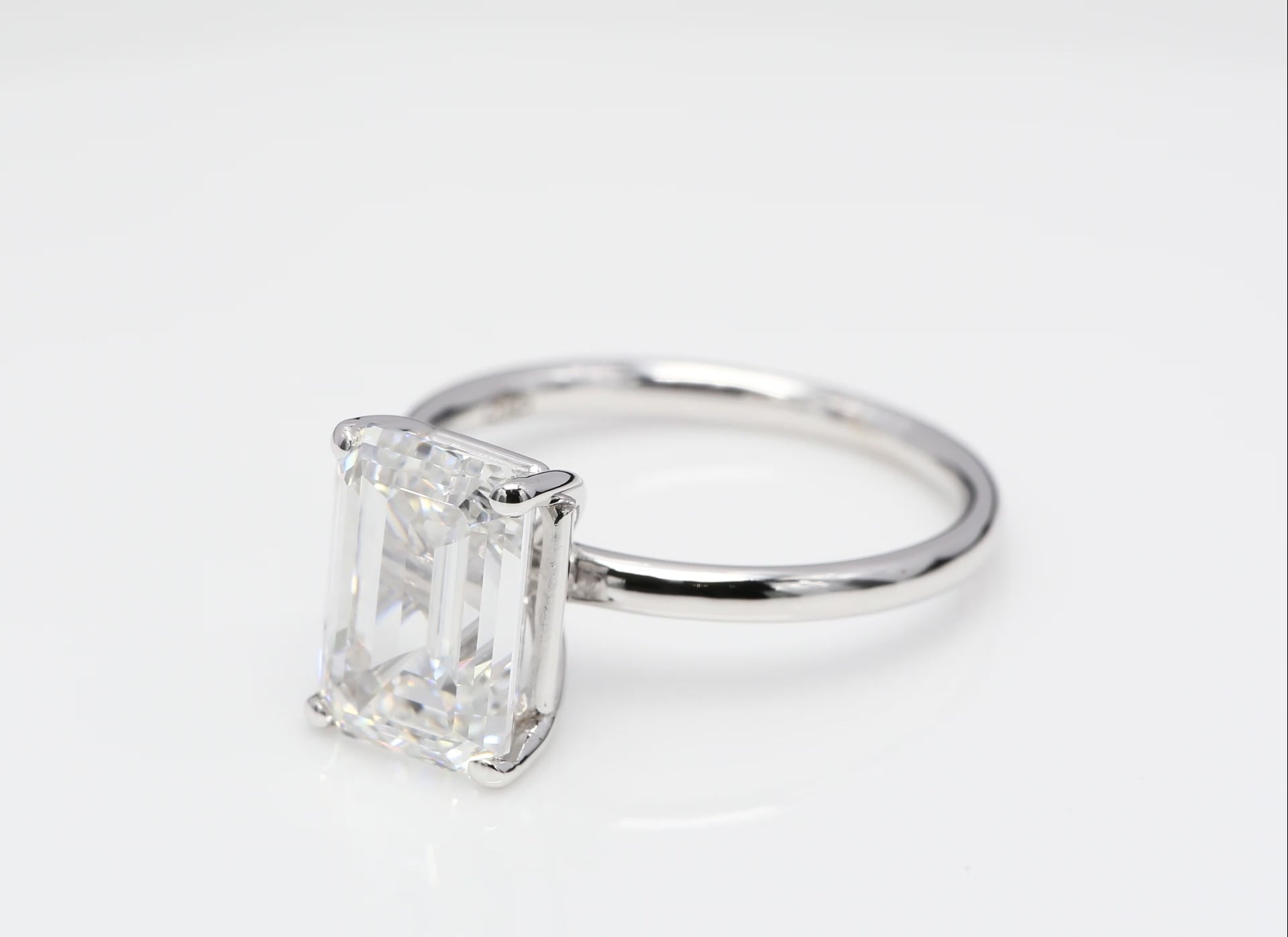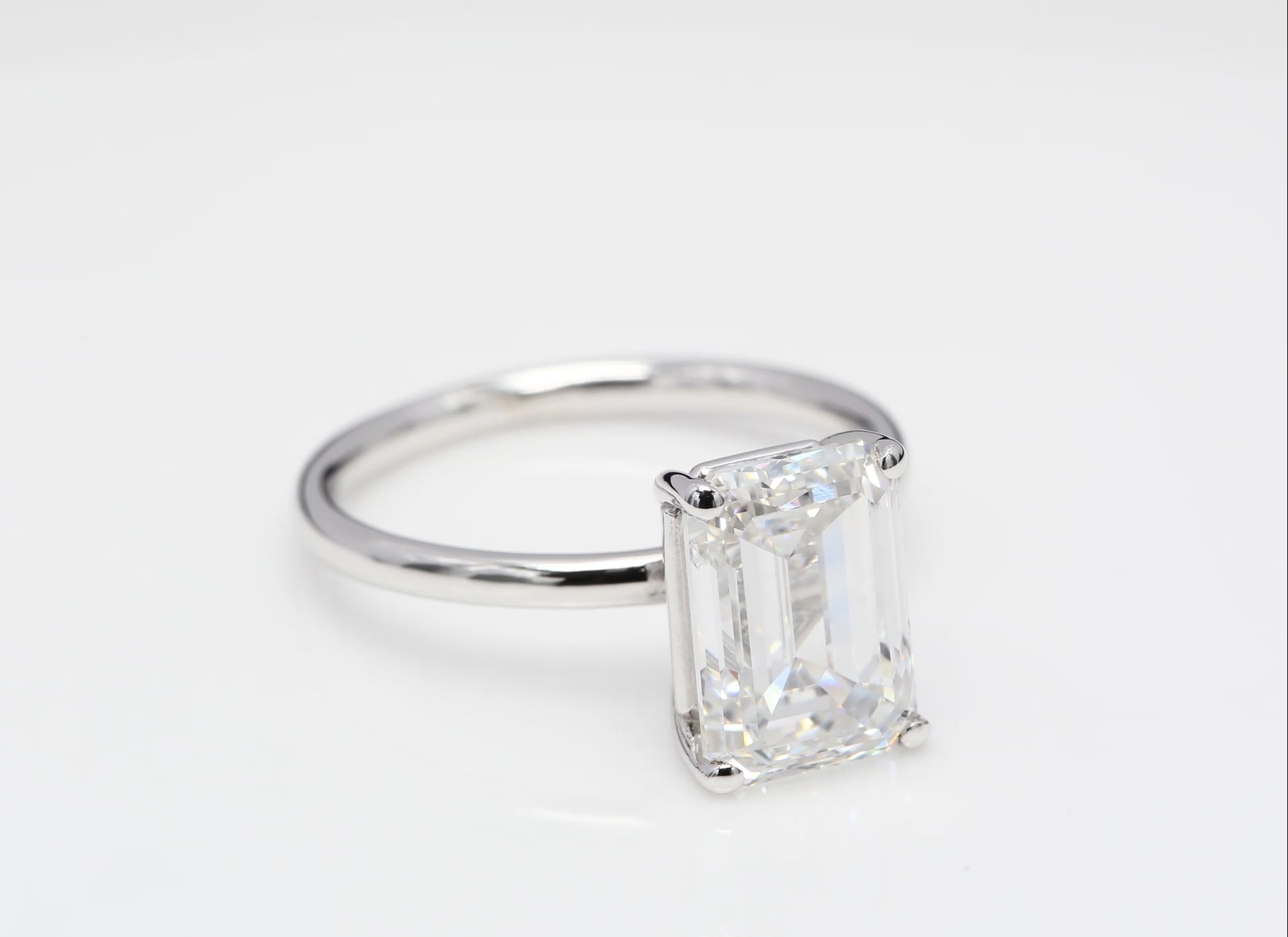 This solitaire white gold ring features stunning 4.00 carats Emerald lab grown diamond, set in 18kt gold. With the same brilliance and clarity as a natural diamond, this eco-friendly alternative is perfect for those seeking a beautiful and ethical choice.