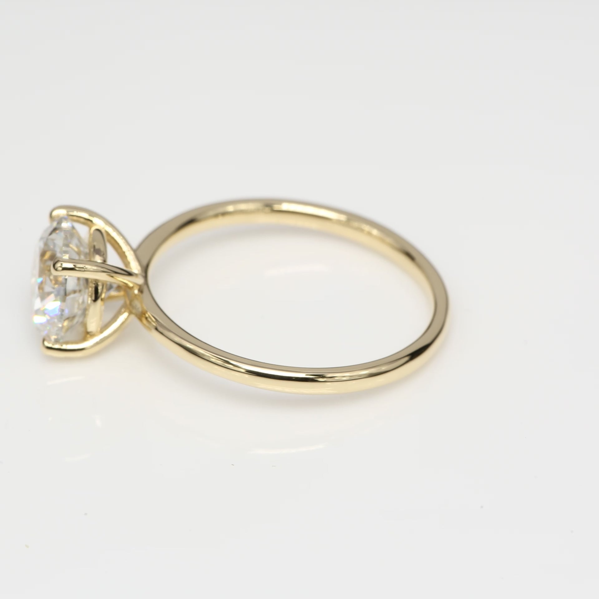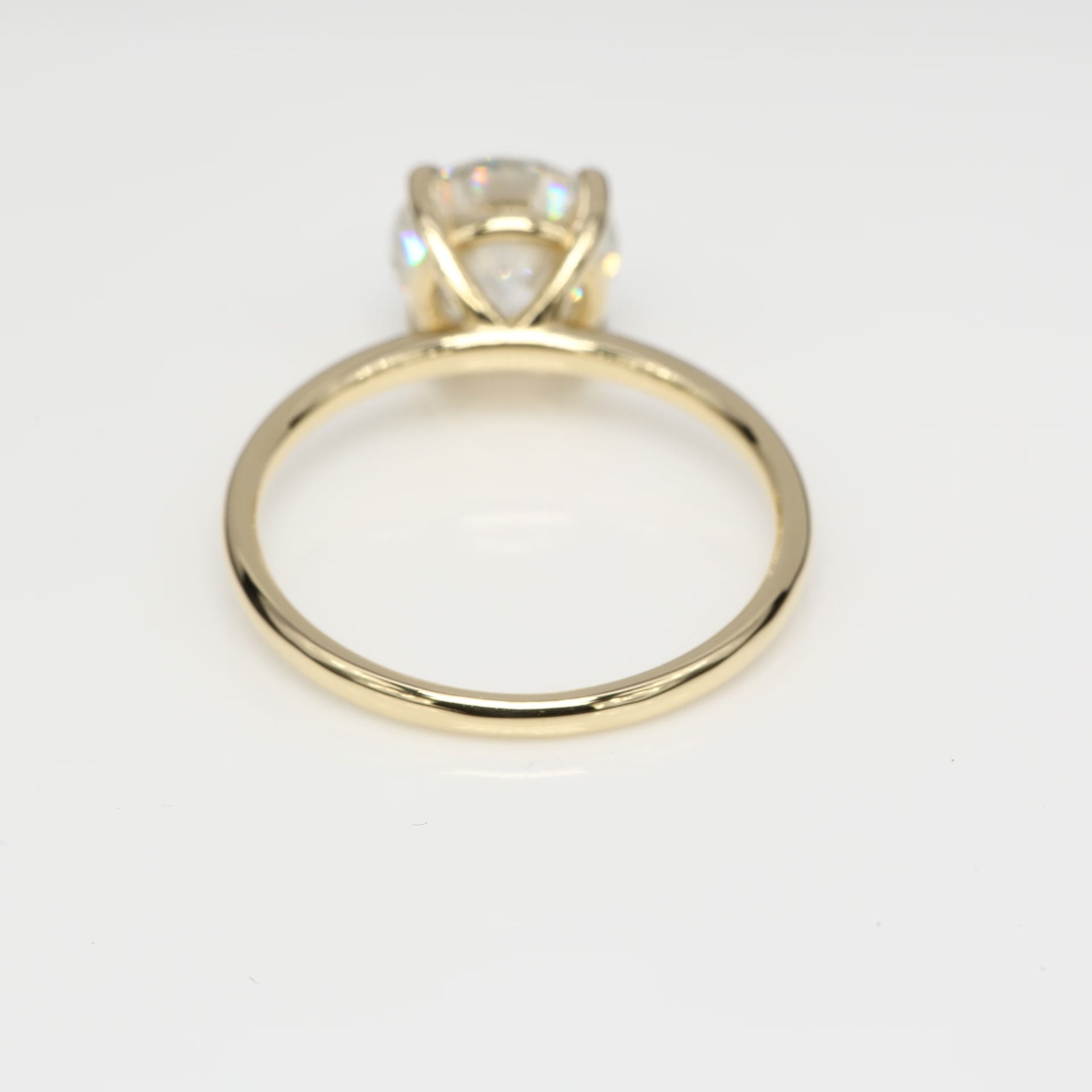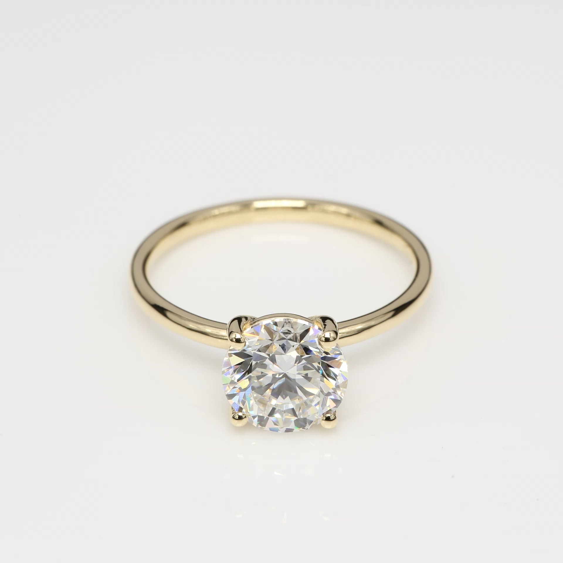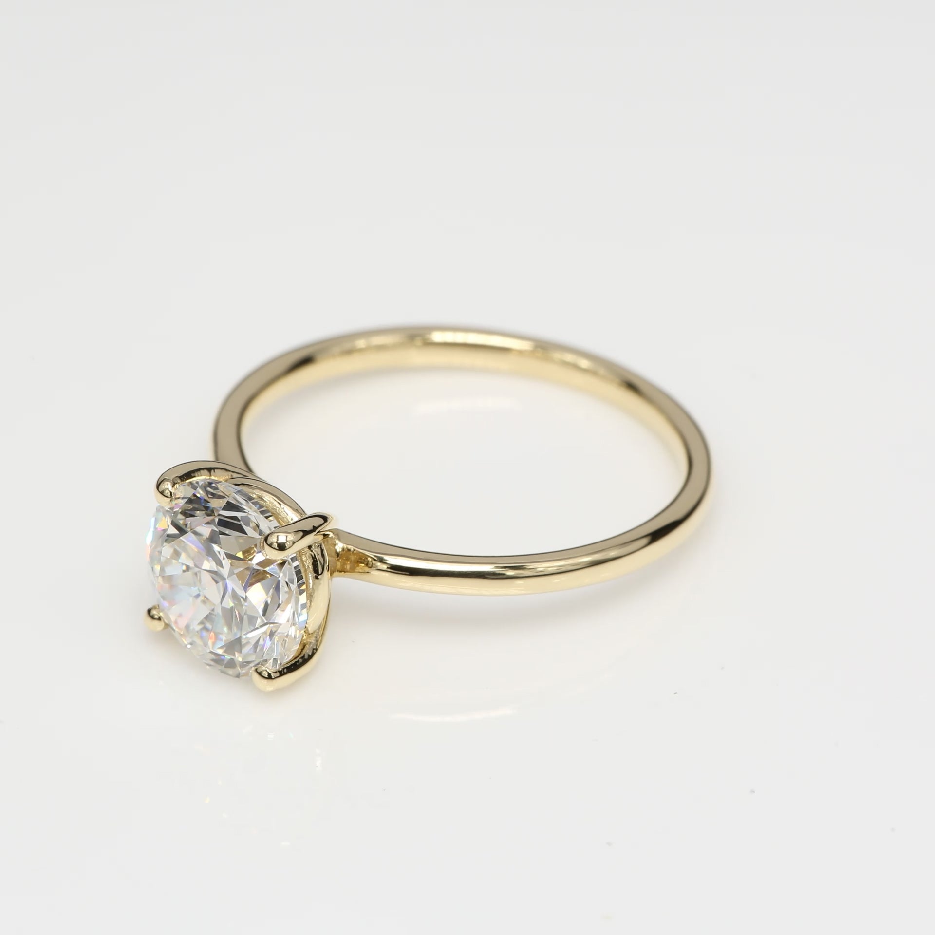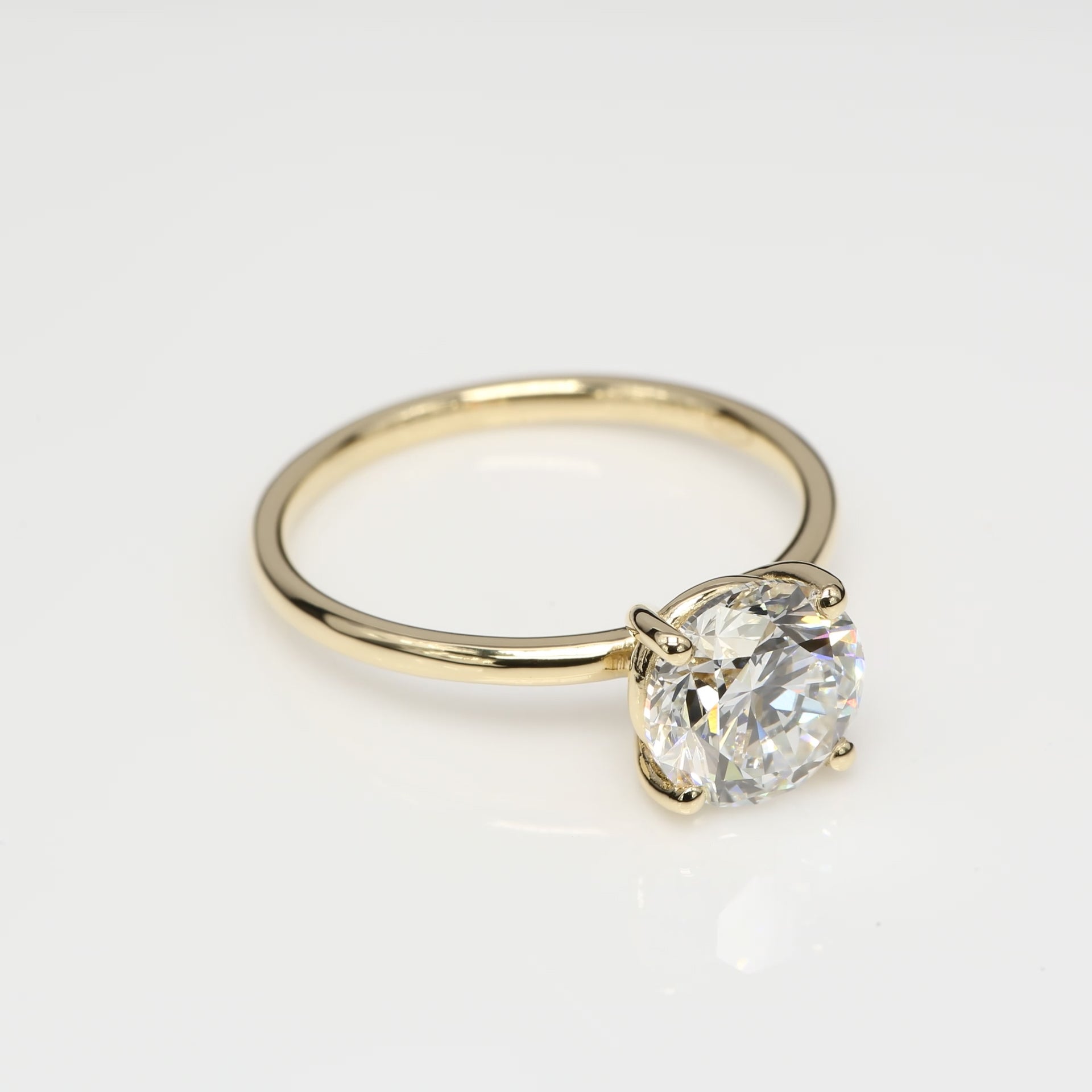This solitaire yellow gold ring features stunning 2.00 carats round lab grown diamond, set in 18kt gold. With the same brilliance and clarity as a natural diamond, this eco-friendly alternative is perfect for those seeking a beautiful and ethical choice.