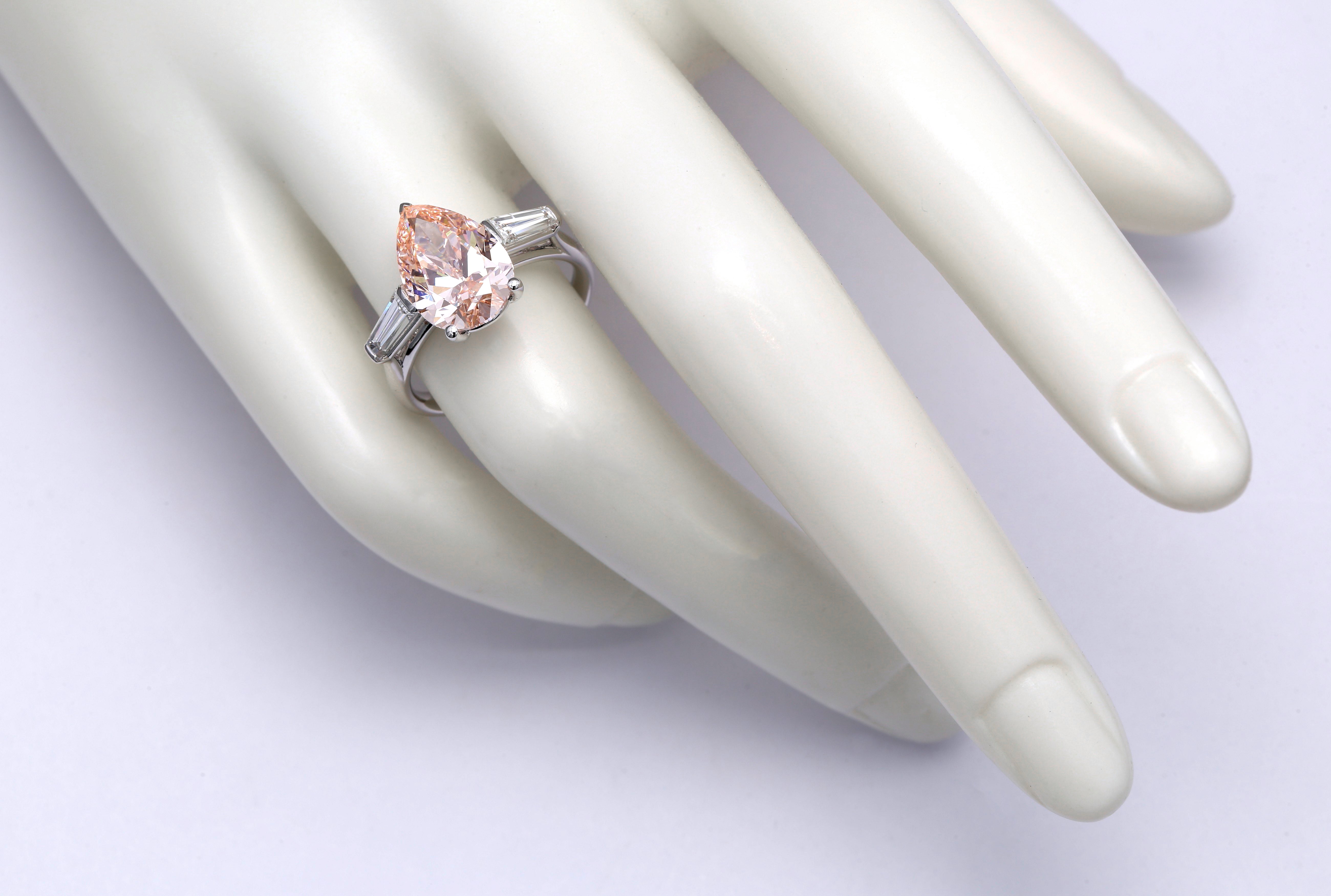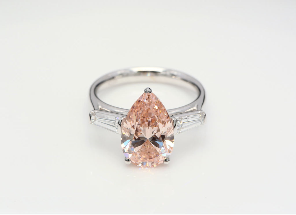 3.00 ct Pear shape Fancy Pink Diamond ring with 2 side diamonds