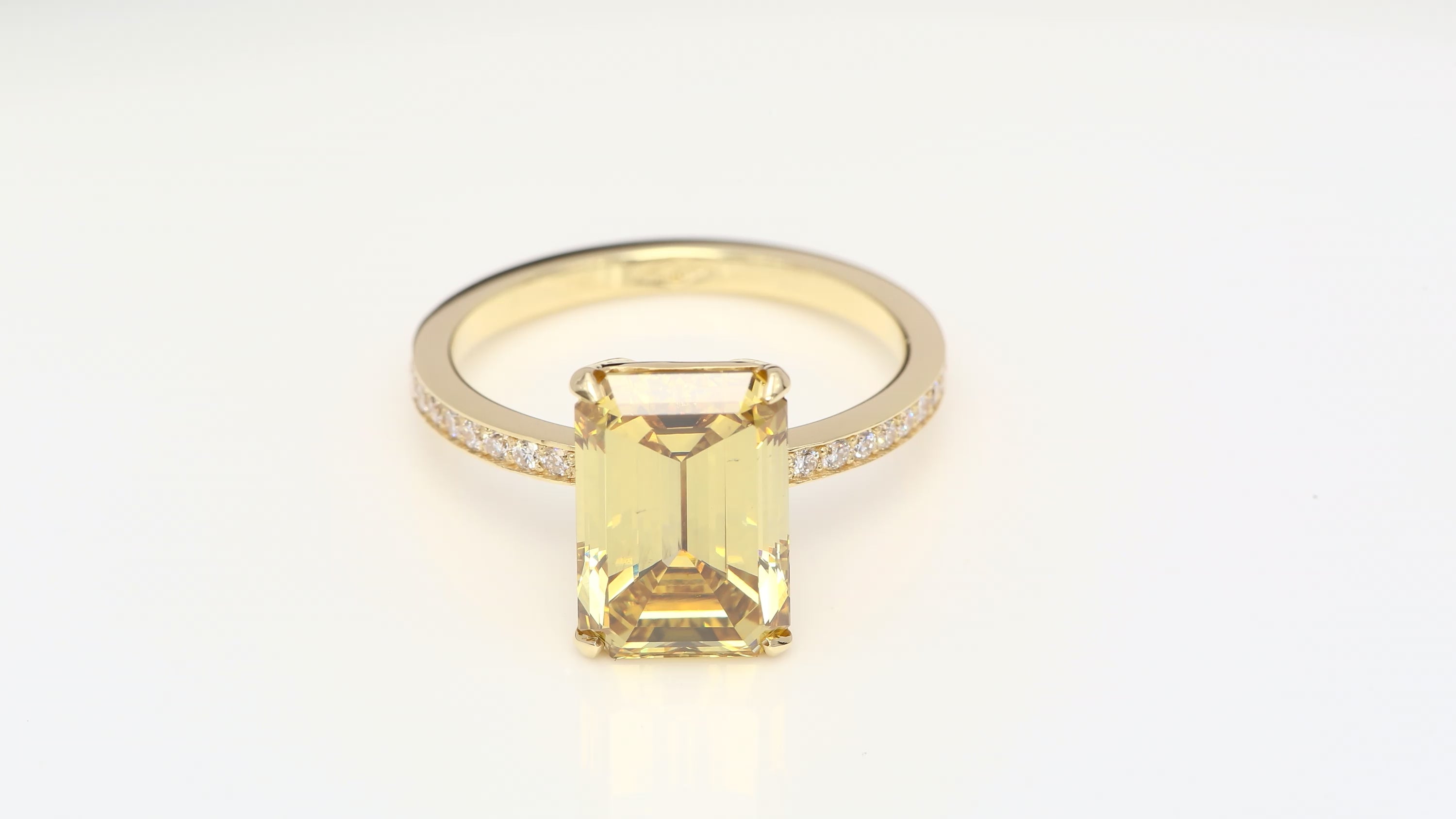4.00 ct Emerald Yellow Diamond ring with side diamonds