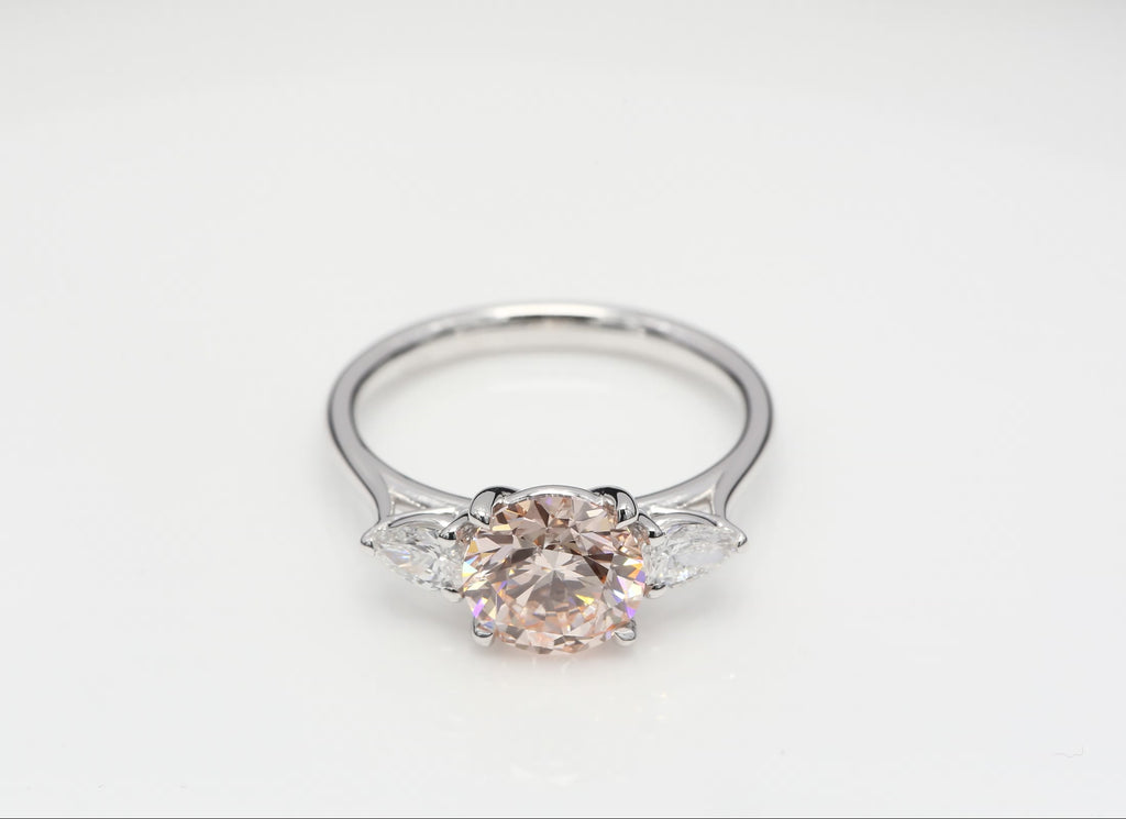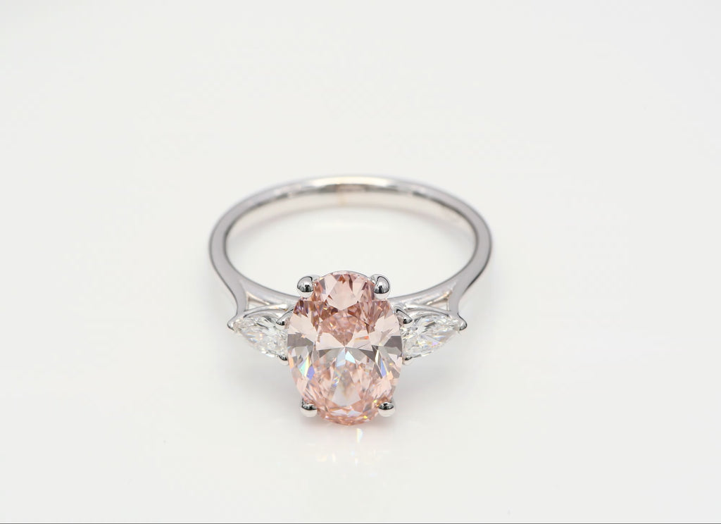 3.00 ct Oval shape Fancy Pink Diamond ring with 2 side diamonds
